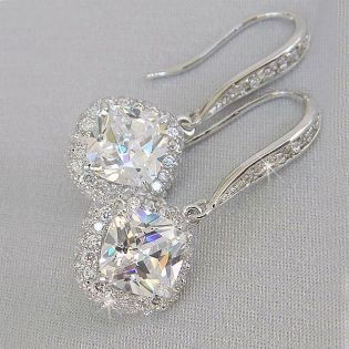 Huitan New Trendy Luxury Silver Color Square Drop Earring Wedding Bridal Accessories Shine Zircon Stone Elegant Women Jewelry