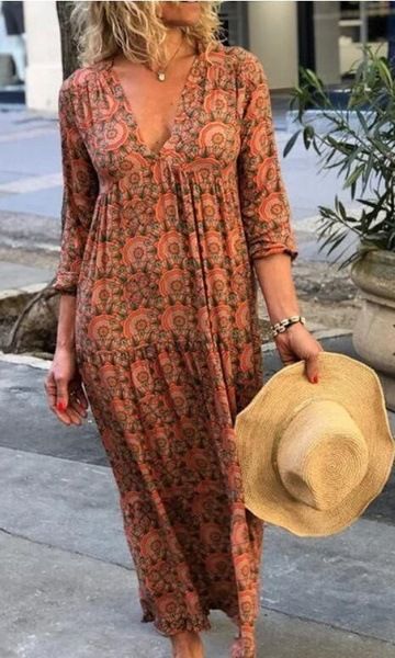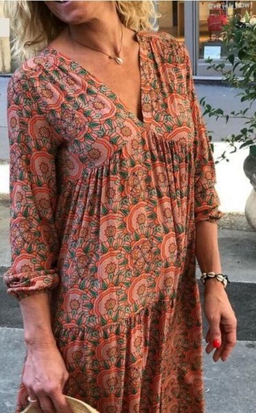 Spring and Autumn Women's Printing New Women's Dress Long Section